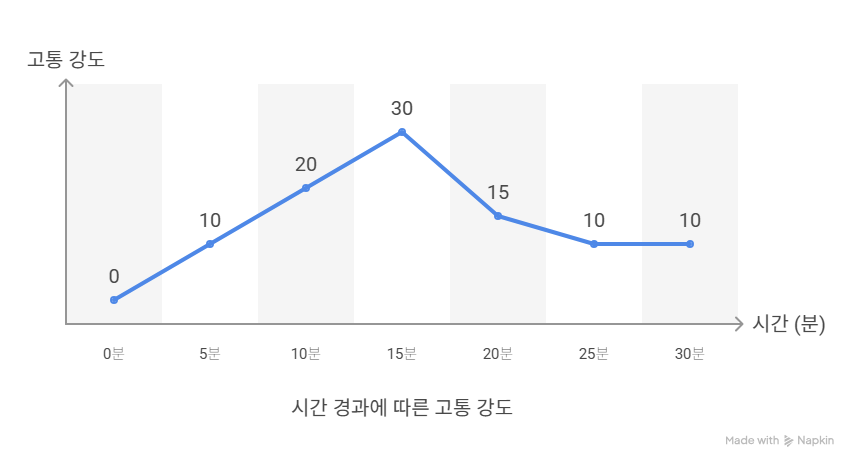 <고통 2> 그래프는 <고통 1> 이후 10분동안